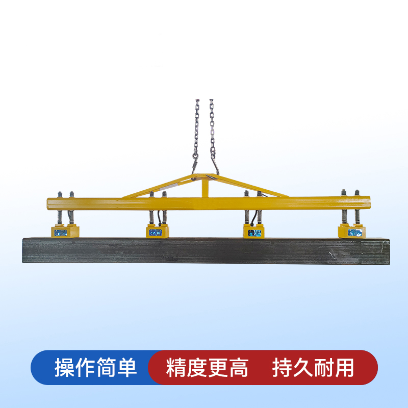 产品介绍:吊运钢坯或重轨方管电永磁吊具专为吊运钢坯、重轨设计,考虑到长钢板吊运可能出现弯曲变形而影响安全吊运,在吊运这类钢板时,我们通常使用多台联吊,本款吊具可以根据钢板的规格范围包括长度、宽度、厚度以及行车的起重吨数,选择不同起吊吨位规格的起重电永磁吊具,多台组合模式联吊可分组控制。